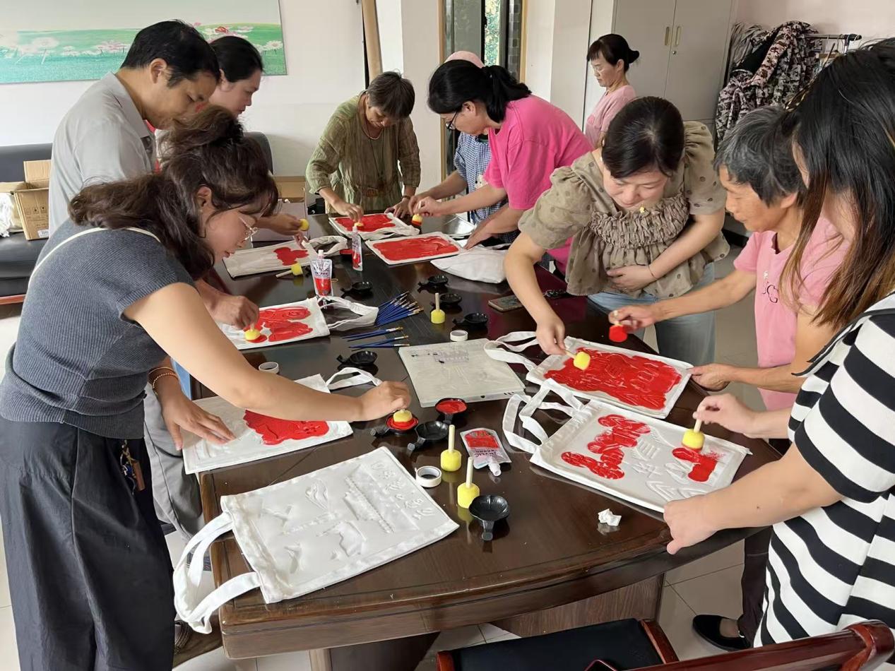 第二个环节是爱国主题帆布包制作。工作人员为居民们准备了帆布包、丙烯颜料、画笔等材料,并介绍了绘画技巧和注意事项。居民们纷纷拿起画笔,在帆布包上绘制图案和字样。经过一个多小时的创作,一个个独具匠心、美观实用的爱国主题帆布包陆续完成,成为居民们表达爱国情感的独特载体。