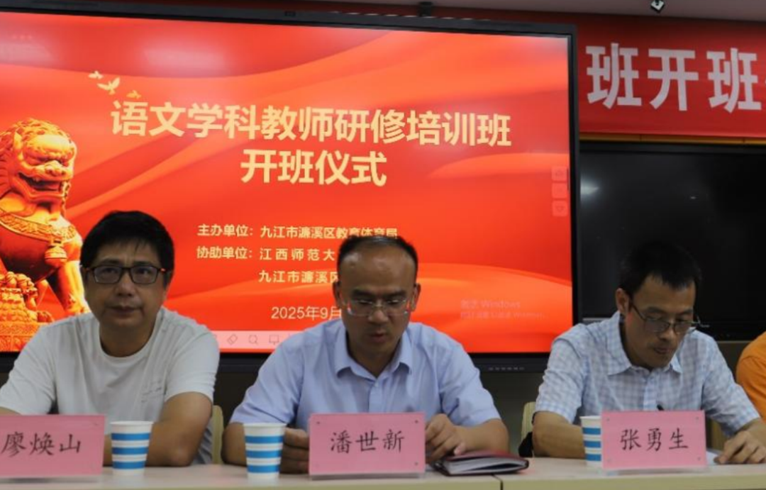 九江新闻网讯(查思玲)为推动高等教育与基础教育的协同提质,进一步提升濂溪区初高中语文教师教学能力,9月27日,由江西师范大学文学院与濂溪区教育体育局联合举办的专项研修活动在濂溪区一中学府校区弘毅楼六楼录播室顺利举行。濂溪区教体局局长潘世新、江西师范大学文学院副院长张勇生出席会议,相关专家及全区初、高中语文教师代表共同参加会议。