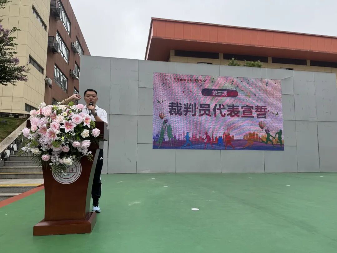 随后,裁判员代表吕业旺老师和运动员代表刘彧澄同学依次庄严宣誓,承诺将恪守规则、公正执裁,尊重对手、奋勇拼搏。