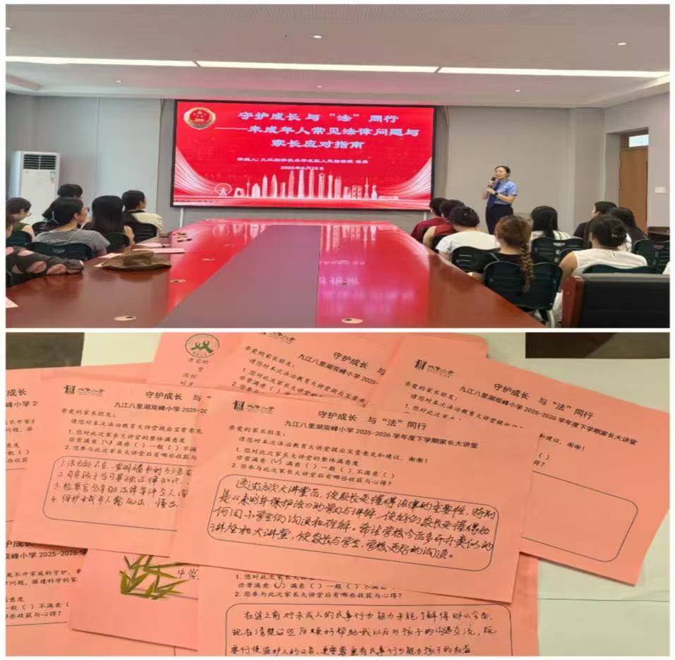 守护成长 “法”伴同行—九江市双峰小学举办未成年人普法家庭教育讲座