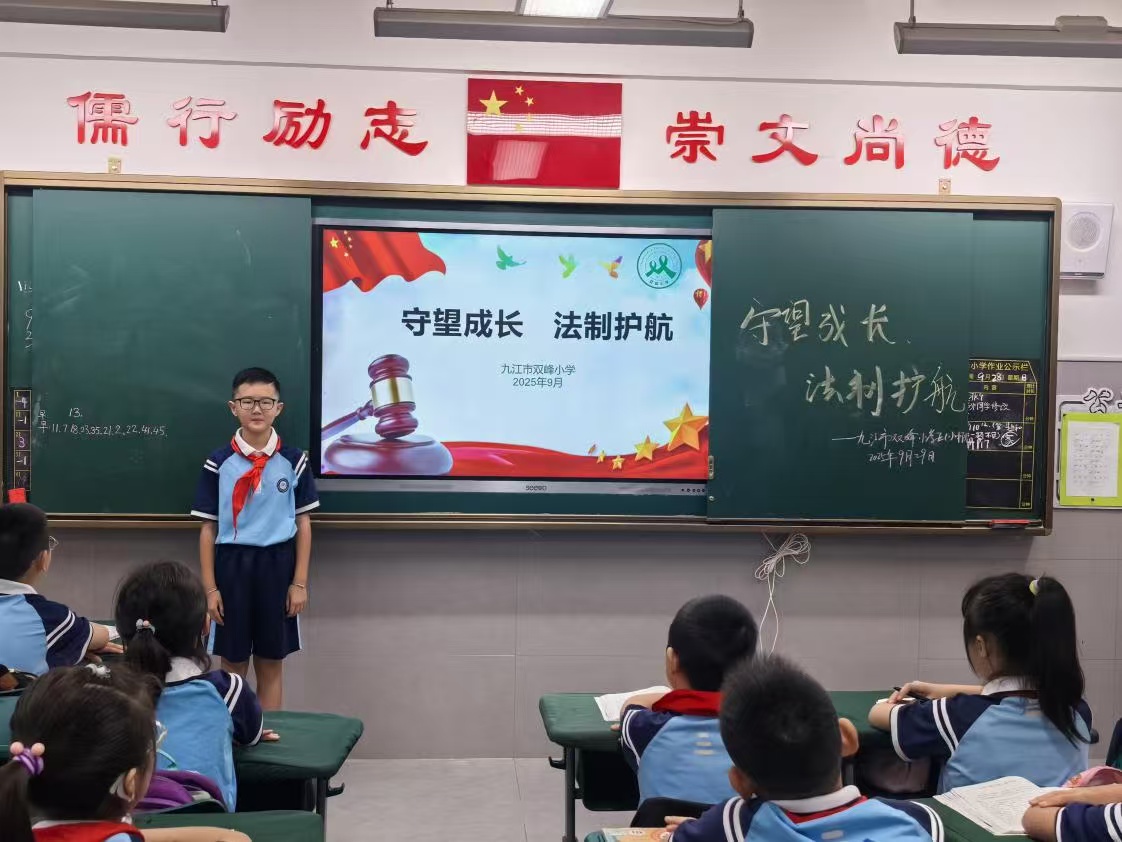 九江新闻网讯(况佳丽)为加强少年儿童法治宣传教育,九江市双峰小学于2025年9月份积极组织并开展了法治安全宣传周活动。通过一系列丰富多彩的活动,在全校范围内营造了浓厚的尊法学法守法用法氛围,有效提升了师生的法治素养。