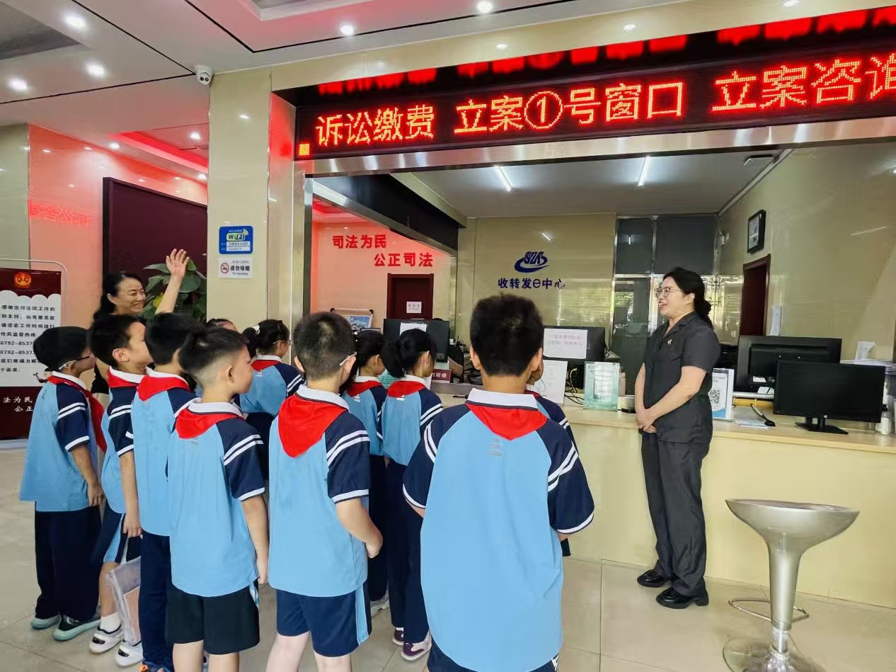 9月29日下午,九江八里湖双峰小学的学生走进了九江经济技术开发区人民法院,开展法治教育实践活动。活动中,学生们首先参观了诉讼服务中心,法官详细讲解了其功能和作用,还引导学生思考调解室参与人员及矛盾解决方式。随后,学生们来到第一审判庭,了解了法庭审判席、原告席、被告席的布局及意义。同学们还根据自己的认识对法官提出了自己的问题,“为什么被告有的坐在一侧,有的又坐在下面的中间呢?”法官针对孩子们的问题为学生们进行了耐心的解答。此次活动让学生们“零距离”感受司法威严,增强了他们的法治观念和法律意识,有助于引导他们从小树立法治信仰,争做守法小公民。