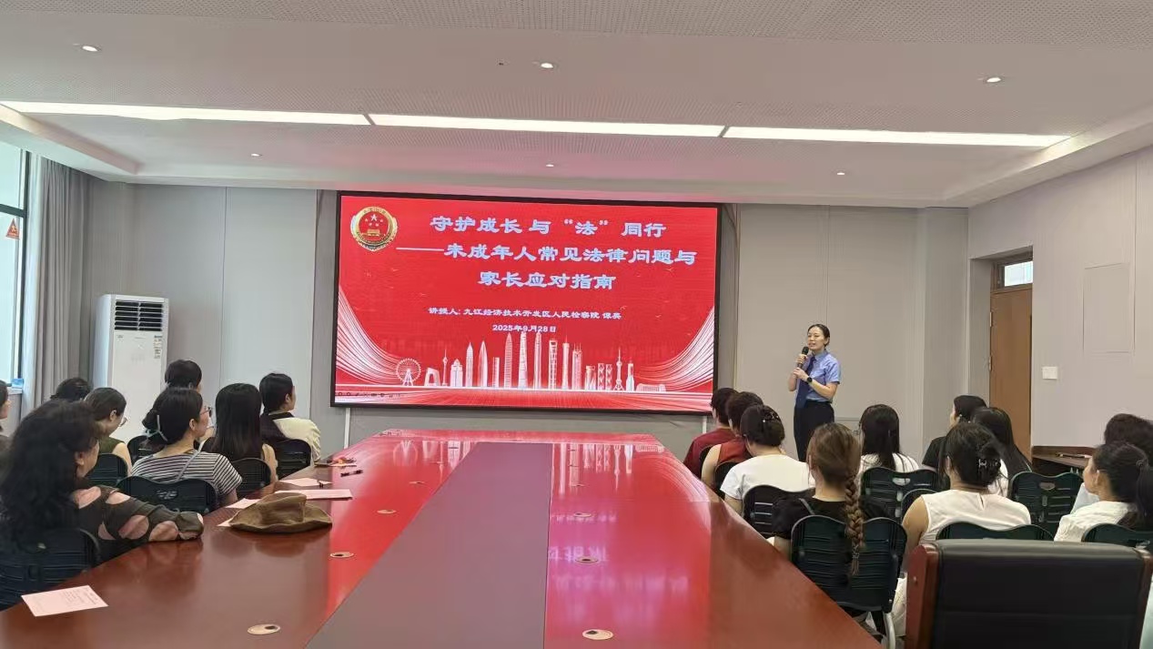 为筑牢未成年人法治保护防线,帮助家长掌握应对未成年人常见法律问题的方法,9月28日,九江八里湖双峰小学特邀九江经开区检察院检察官开展专题法治讲座,近百名学生家长到场参与。