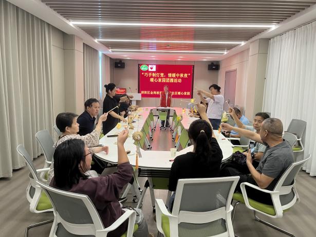 浔阳区金鸡坡街道金炼社区暖心家园开展“巧手制灯笼,情暖中秋夜”主题活动