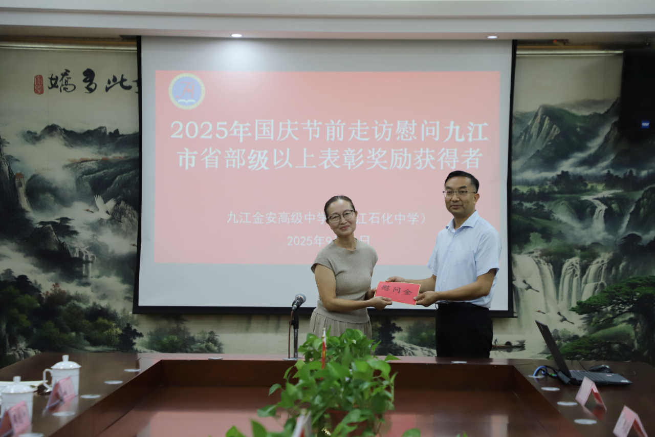 九江新闻网讯(王建/文 廖梦翔/图)9月29日下午,九江市人社局党委书记、局长徐永平一行,在九江市教育局党委委员、副局长曹利平和人事科科长杨勇的陪同下,前往九江金安高级中学(九江石化中学)走访慰问省部级以上表彰获得者——全国模范教师张丽群。学校党总支书记杨元章等班子成员出席活动。