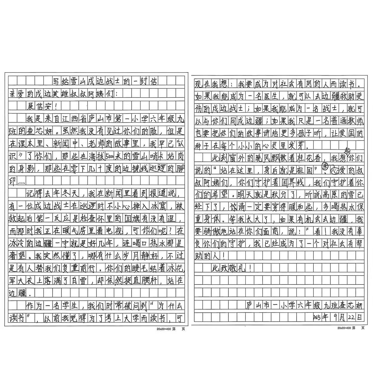 六年级同学们开展了“一封书信致先锋,莲芯书志向未来”活动。他们以笔为媒,写信给戍边战士、航天英雄等等,表达崇高的敬意,并立下“为中华之崛起而读书”的远大志向,展现了新时代少年如莲茎般挺拔向上的责任与担当。