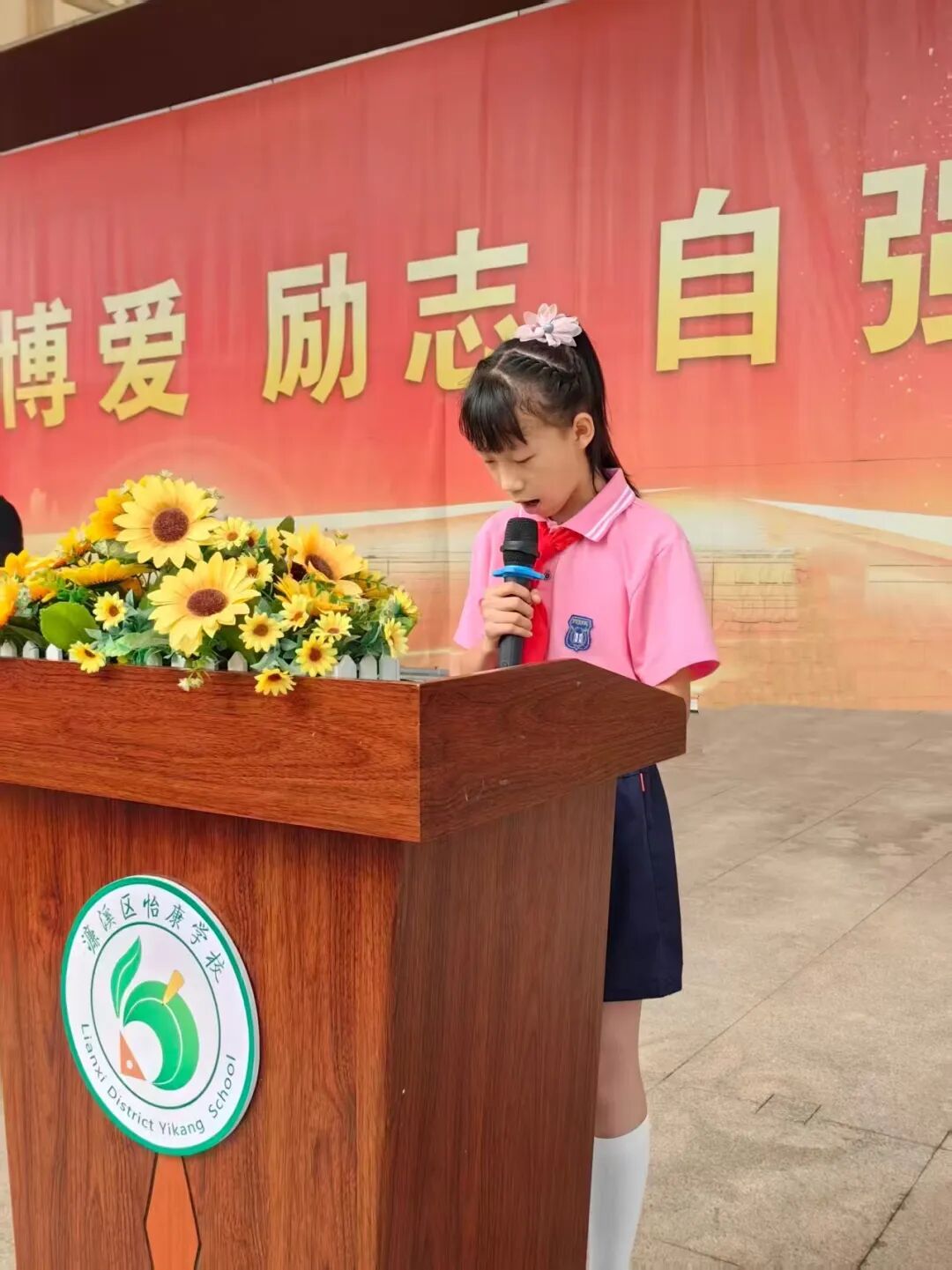 在升旗仪式上,伴随着《义勇军进行曲》的激昂旋律,鲜艳的五星红旗冉冉升起,全体师生肃立注目。六年级学生司芮妤在国旗下讲话,她从中秋团圆情谈到国庆家国志,点明“家是最小国,国是千万家”,激励同学们牢记“强国有我”的时代使命,以实际行动守护这“月满、旗红、家国安”的美好时光。