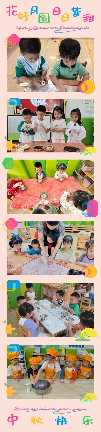 全园幼儿共同参与月饼制作,揉面团、包馅料、压模具,在亲手制作中品味中秋的甜蜜,感受中秋佳节的浓厚氛围。