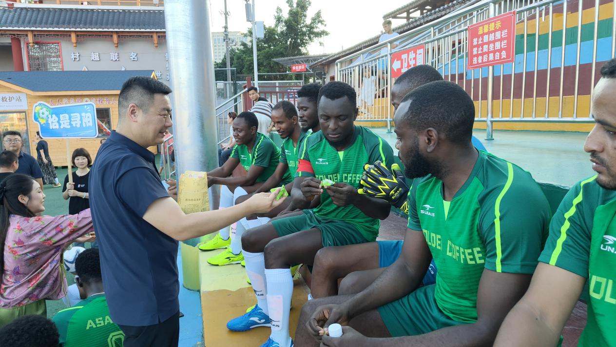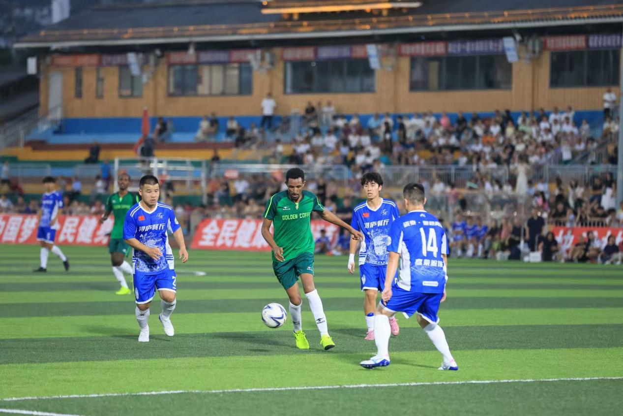 九江新闻网讯(邱春梅/文 李志/摄)10月5日晚,在贵州榕江举办的第二届“村超”“一带一路”国际友谊赛中,九江琵琶亭队迎来一场精彩对决,最终以6:1的比分大胜远道而来的埃塞俄比亚黄金咖啡队,展现出强劲的竞技实力。整场比赛不仅赛出了水平与风格,更成为九江向全国乃至世界展示其深厚文化底蕴与城市风貌的生动窗口。