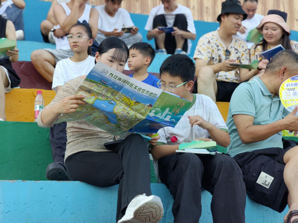 海量宣传物料精准覆盖:现场派发的浔阳手绘旅游地图、“悠然庐山·诗画九江”宣传册以及《跟着课本游九江》 书籍共计千余册,如同一位位无声的导游,将九江的山水与文脉娓娓道来。