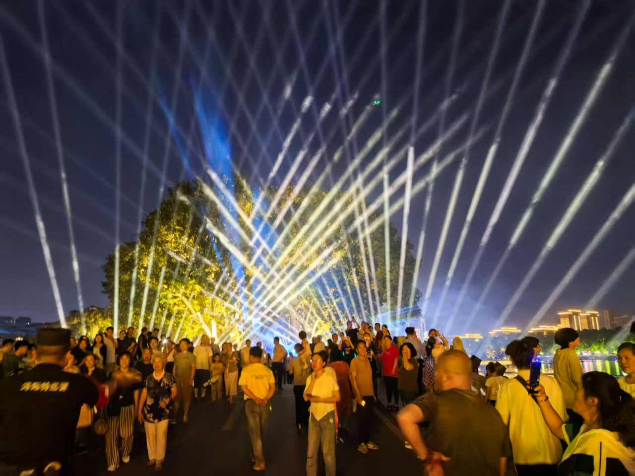 自9月30日启幕以来,甘棠公园与李公堤两大主场地始终人气爆棚。从国庆首日“童心向阳·歌唱祖国”童声演唱会的清澈歌声,到“街舞浔阳”挑战赛的活力舞步。从半月亭畔民谣歌会的晚风浅唱,到中秋夜圆月与华灯交映的团圆盛景,多元活动串联起“日夜皆精彩”的节日体验。尤其是十八组主题灯海,从童趣盎然的“糖果男孩”到典雅大气的“国色天香”,从湖面荡漾的“九派浔阳郡”诗词灯影到树上垂落的繁星灯组,将“分明似画图”的浔阳盛景具象化,让市民游客沉浸式感受“天上月正圆,人间灯如昼”的诗意浪漫。