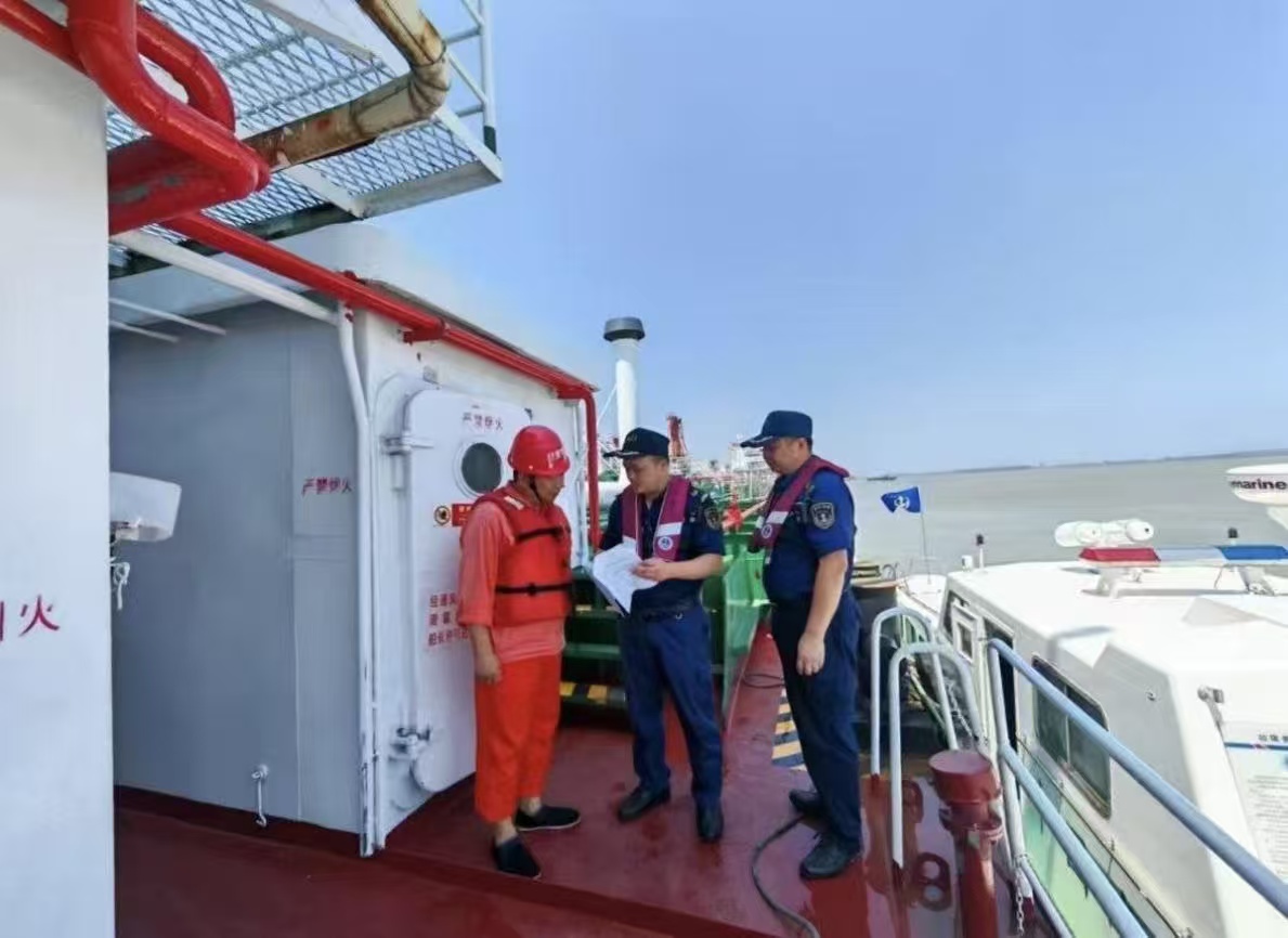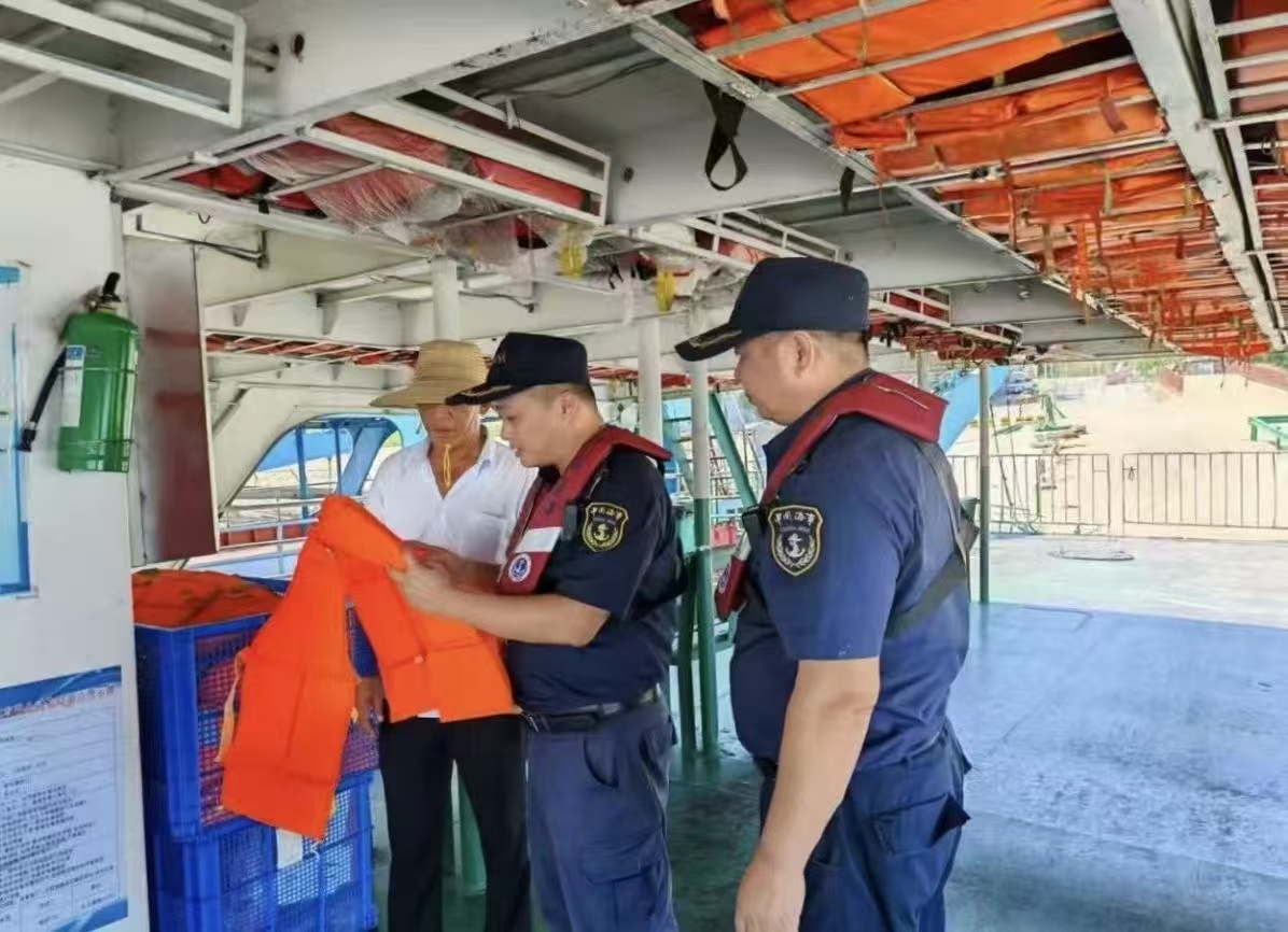 九江新闻网讯 为保障国庆中秋假期水上交通安全形势持续稳定,确保人民群众平安便捷出行,九江新港海事处执法人员深入辖区渡口,开展现场随船监管与跟船检查。