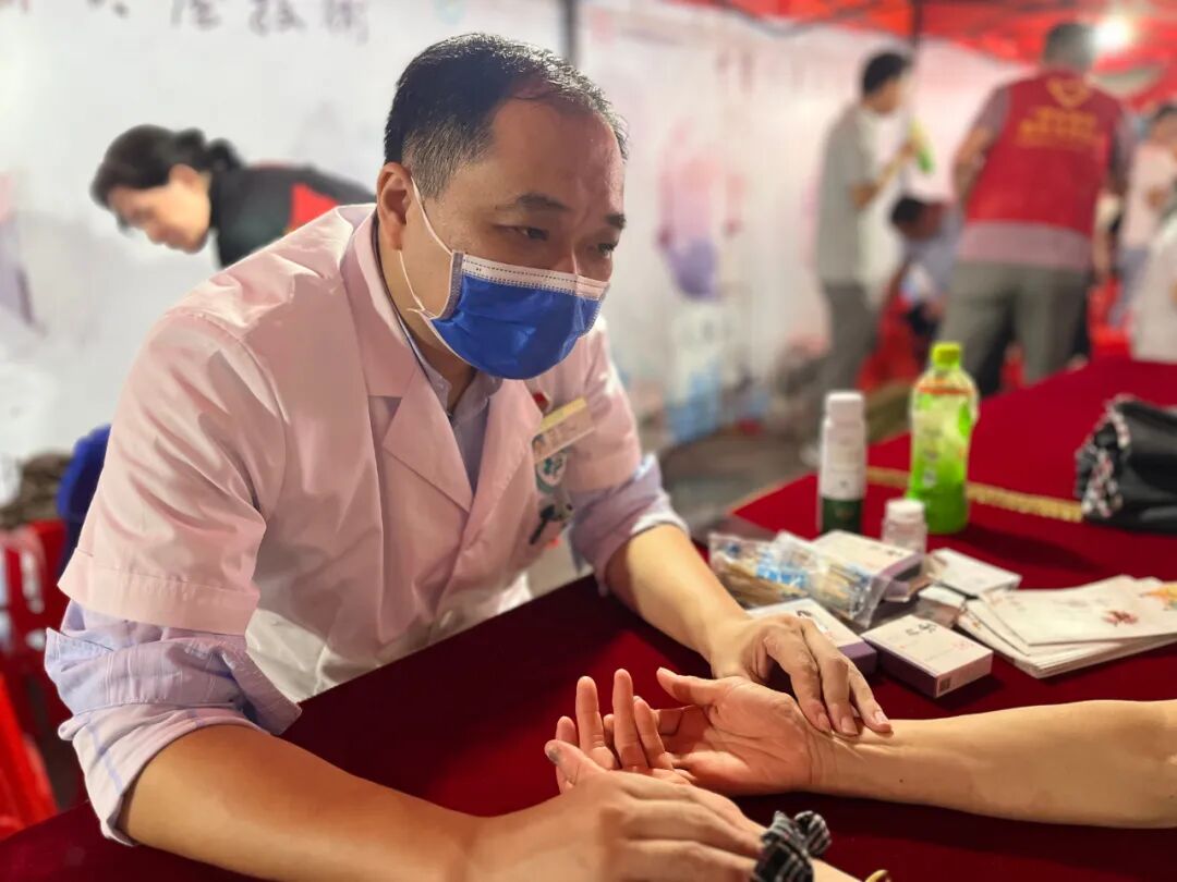 资深中医专家现场提供免费脉诊、体质辨识服务,针对不同体质出具个性化调理建议,如食疗方案、穴位按摩指导等,并同步发放中医药健康宣传手册。专业医师现场操作灸法、耳穴压丸、推拿按摩等中医适宜技术,帮助市民缓解颈肩腰腿痛、日间疲劳等问题。夜市现场提供中药代茶饮、膏方品尝服务,让市民感受“药食同源”理念。一位参与体验的市民感慨:“医生不仅告诉我怎么调理身体,还教了我几个简单的穴位按摩手法,特别实用。中医夜市活动也让更多老百姓深切体会到中国传统中医药的魅力与功效。”