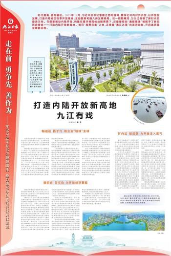 时代潮涌,使命催征。2023年10月,习近平总书记考察江西时强调,要深化对内对外开放,以开放促发展,打造内陆地区改革开放高地,主动服务和融入新发展格局。这一殷殷嘱托,为九江指明了新时代的奋进方向。在国家推动内陆开放、构建双循环格局的战略背景下,这座曾经的“通衢要津”被赋予了新的历史使命——打造内陆开放新高地。昔日“商贾云集”之地,正乘着“通江达海”的澎湃动能,开启高质量发展新征程。