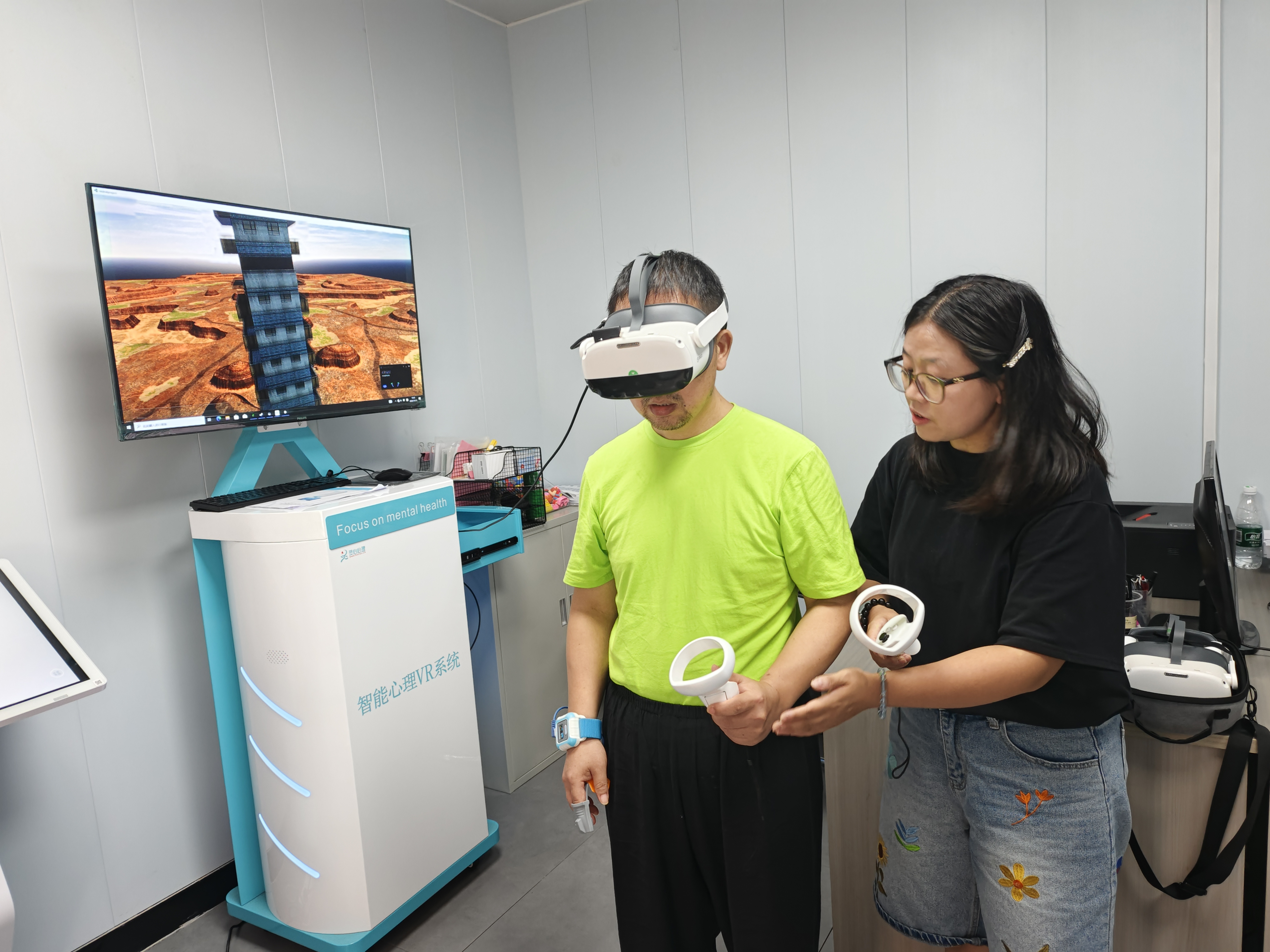 作为活动收官环节,科技互动体验区引入智能心理VR系统与智能心理咨询自助系统两大先进设备。在李欣晏博士、张伟娟医生指导下,参与者通过智能心理VR系统沉浸式体验压力释放场景,借助虚拟现实技术实现情绪疏导;智能心理咨询自助系统则通过标准化心理测评工具提供即时心理状态分析,并生成个性化建议。设备体验区全程由专业医生现场指导,确保科学、安全使用,参与者反馈“科技感强、体验感佳”。