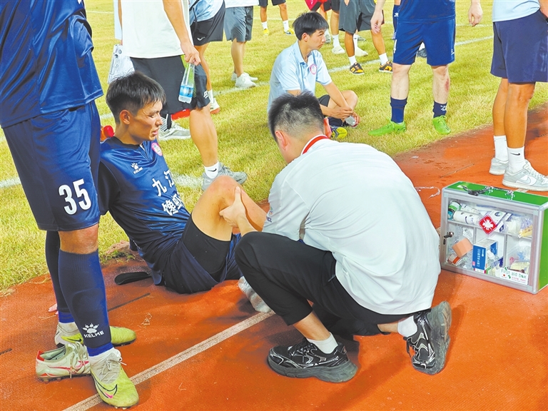 “有一次,九江队门将来晓宇脚踝扭伤,眼看就要下场。我迅速评估后,决定现场为他正骨,让他得以继续比赛。”“在与景德镇队比赛前,聂皓天掌屈肌肌腱损伤,原本无法上场。我们为他制定了最快速的康复治疗方案,最终帮助他顺利参赛。”张麒麟说。据了解,此类即时处置案例在赛事保障期间共发生数十起,均得到科学、高效的处理。