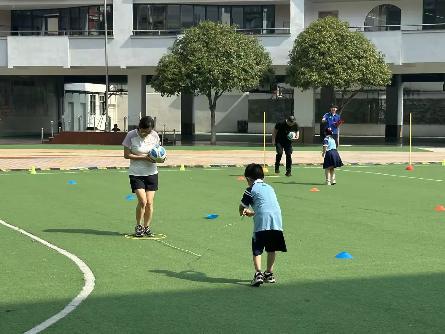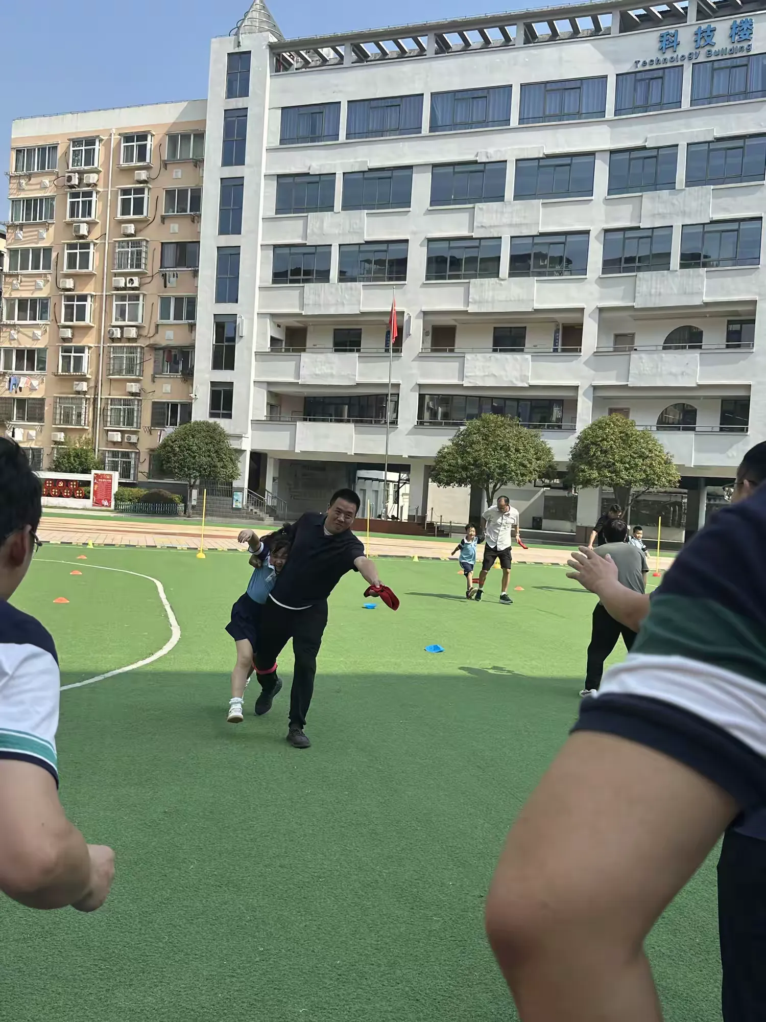 “小脚踩大脚”接力赛堪称全场最暖心的项目。孩子们把小脚稳稳踩在家长的大脚上,家长们一手扶着孩子、一手摆臂向前,小心翼翼又充满力量地冲向终点。每一步都走得踏实又坚定,仿佛在告诉孩子:“别怕,爸爸妈妈会带着你一起向前。”