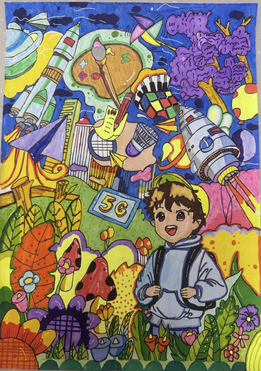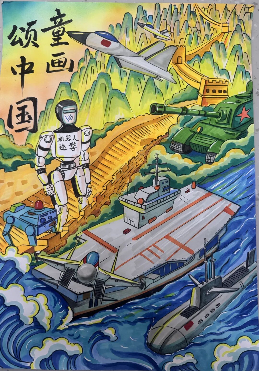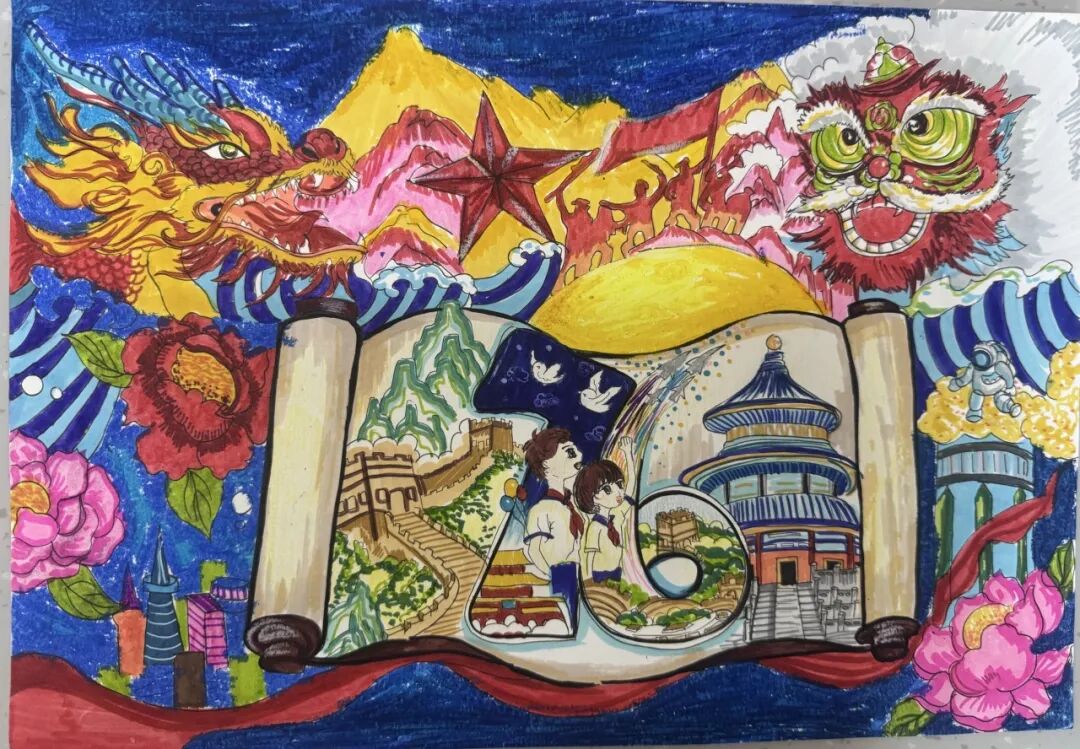 各年级根据学生特点,开展了丰富多彩的实践创作活动。一年级的小同学们,用稚嫩而庄重的声音,录制了演唱《义勇军进行曲》的小视频。他们挺直腰板,神情专注,歌声虽显童稚,却充满了力量,展现了从小爱国、立志向上的精神风貌。二至五年级的同学们拿起画笔,以“童画颂中国”为主题展开创作。一幅幅充满童真与想象的画作,描绘了祖国的壮丽山河、瞩目的科技成就、丰富的传统文化以及和谐美好的幸福生活,色彩斑斓间尽显对祖国的无限热爱与赞美。