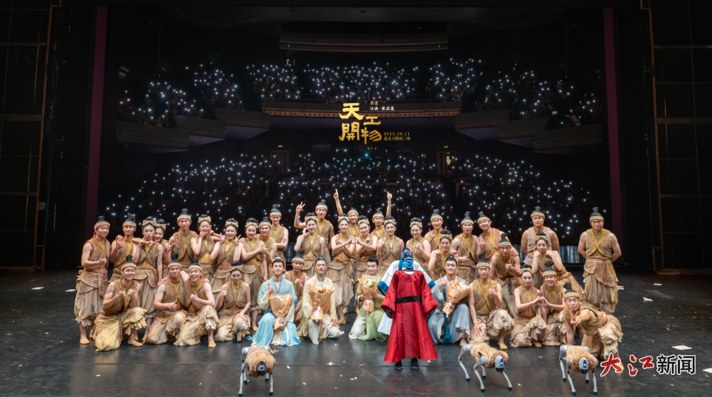 值得一提的是,舞剧谢幕环节中,智能机器人与舞者同台亮相、默契互动,以独特的呈现形式带来震撼观感,古代工匠精神与现代人工智能的碰撞在此刻尤为鲜明。