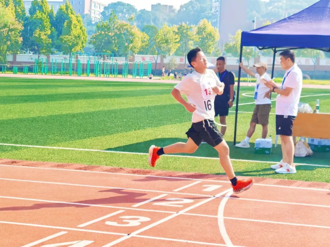 赛场上,运动员们展现了极佳的精神风貌,赢得了现场师生的阵阵掌声与喝彩。赛道上,他们风驰电掣,全力冲刺;跳远沙坑前,他们凝神聚力,奋力一跃;投掷区内,他们铆足干劲,掷出力量。