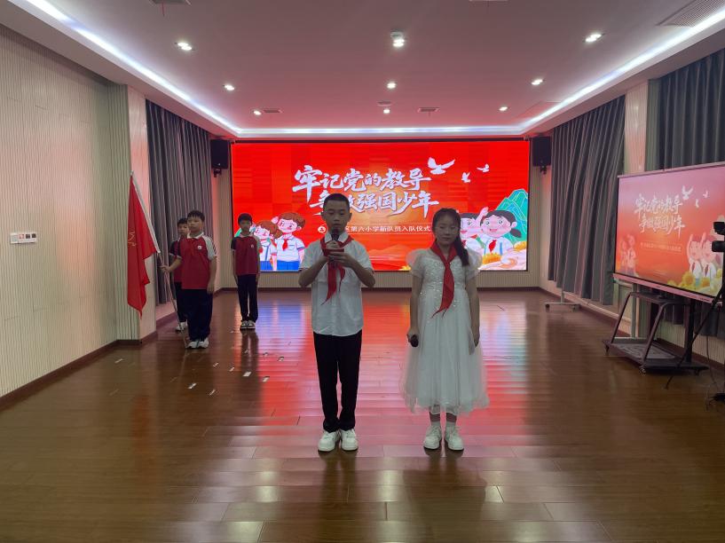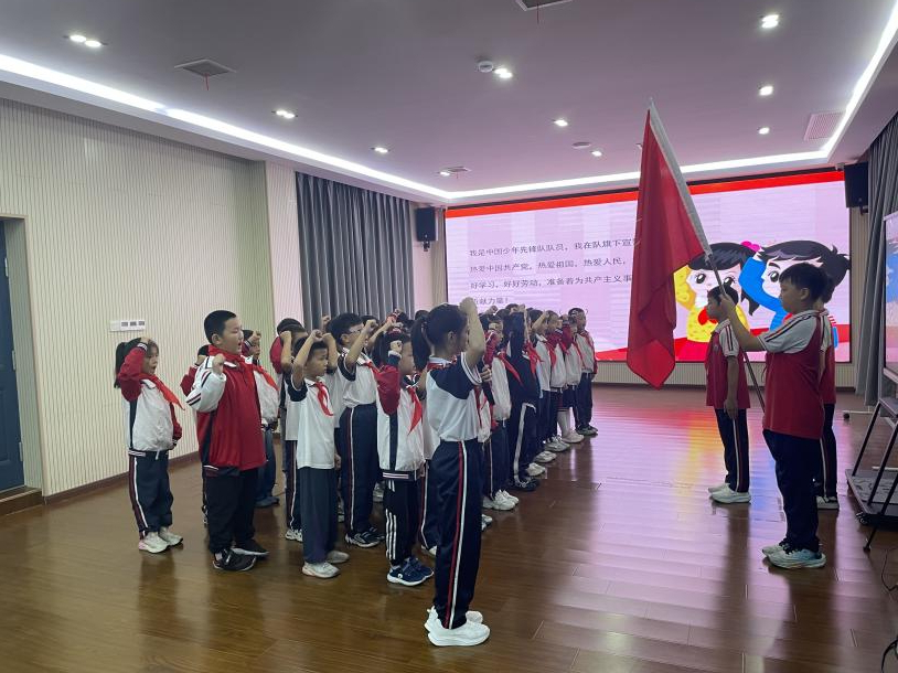 在大队长曹晨钰同学的带领下,全体少先队员高举右拳,在队旗下庄严宣誓,一句句铿锵有力的誓词,是他们对少先队的郑重承诺,也是他们立志为红领巾增添光彩的坚定决心。