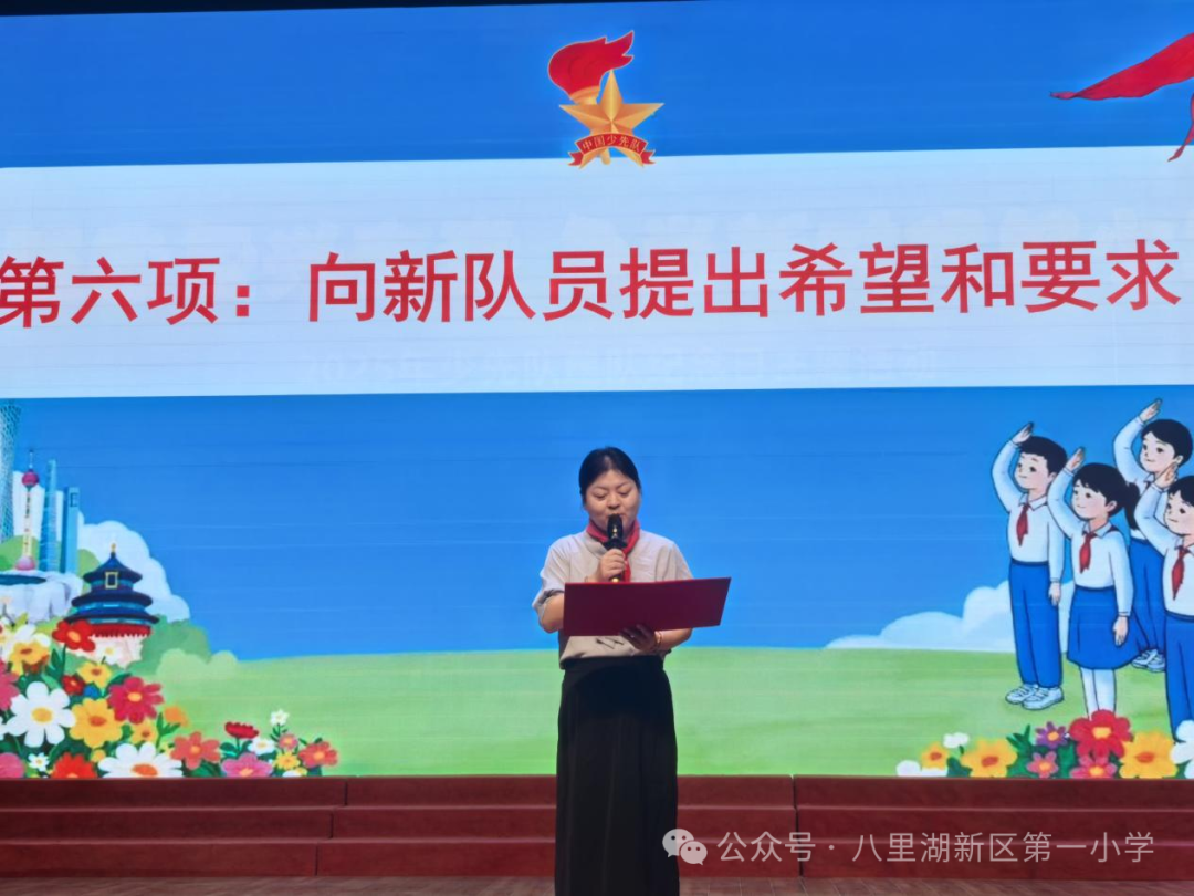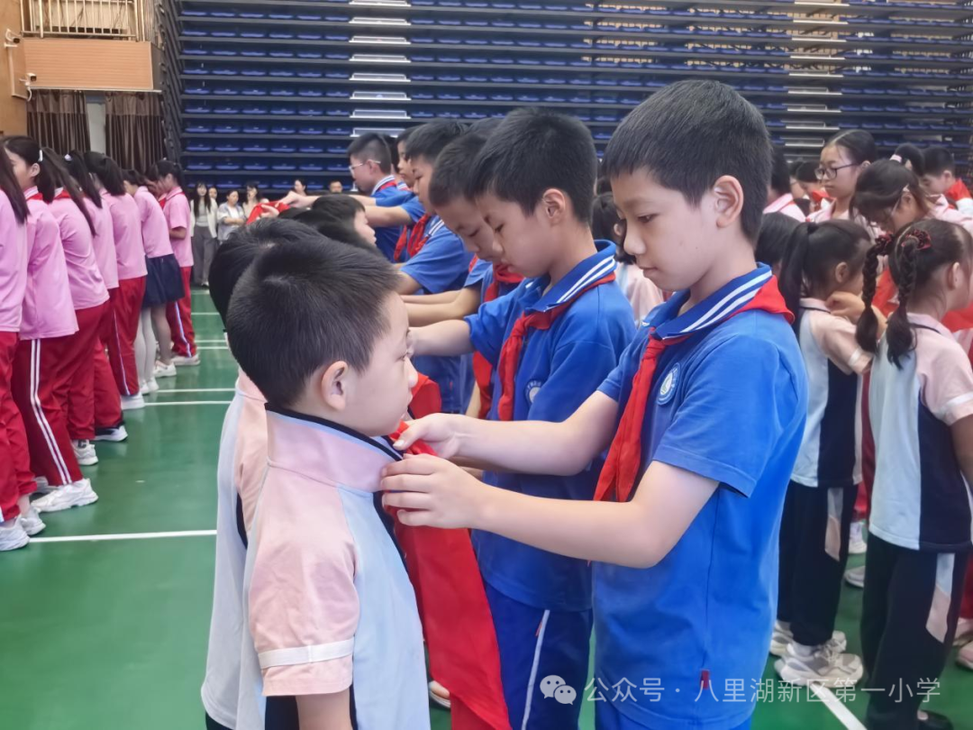 本次入队仪式与“一星章”表彰仪式同步举行。在嘹亮的《中国少年先锋队队歌》中,新队员们佩戴上鲜艳的红领巾,在队旗下庄严宣誓。老队员为他们系上红领巾的瞬间,掌声与泪水交织,见证着红色接力棒的传递。