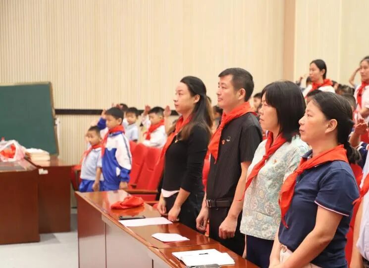 学校少工委副主任、副校长王梦云郑重宣读二年级第二批新队员名单。在队旗的见证下,学校领导为新队员佩戴上鲜艳的红领巾。