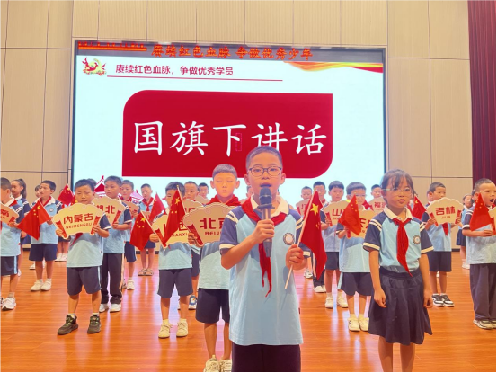 活动中,三(5)中队的周灿恩同学以饱满的热情发表主题演讲。他回顾革命先辈的奋斗历程,讲述红色血脉的深刻内涵,号召全体同学争做新时代的优秀少年。