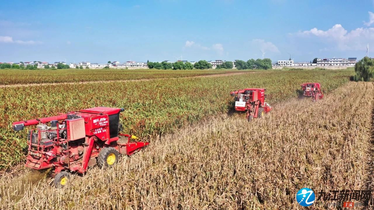 九江新闻网讯(柯恒 赵斌 九江日报全媒记者 程静 文/摄)金秋时节、五谷丰登,在彭泽县棉船镇的广袤田野上,上万亩高粱迎来了丰收季。当地正抓住晴好天气抢收抢晒,田间地头处处呈现忙碌景象。