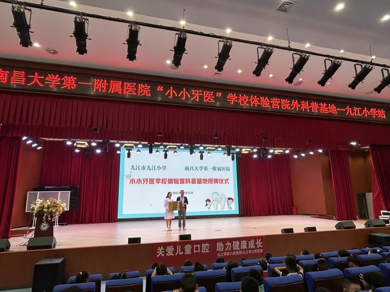 九江新闻网讯(凌子岚)10月13日,南昌大学第一附属医院口腔科的医护团队走进九江小学九龙山校区,开展了一场集知识科普与实践体验于一体的口腔健康公益活动,并为学校“小小牙医学校体验营科普基地”授牌,搭建起校园口腔健康科普的长效平台。