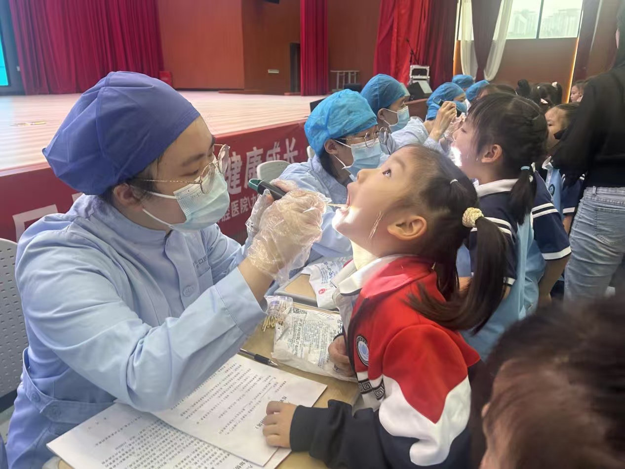 课堂结束后,口腔检查区随即开启服务。医护团队耐心细致地为孩子们逐一检查口腔状况,记录牙齿健康情况,针对龋齿、牙列不齐等问题为每位孩子提供个性化防护建议,并提醒家长定期带孩子进行口腔检查。与此同时,“小小牙医”实践体验同步开展,在医护人员指导下用口腔镜为同伴检查牙齿,在角色扮演中消除对看牙的恐惧。