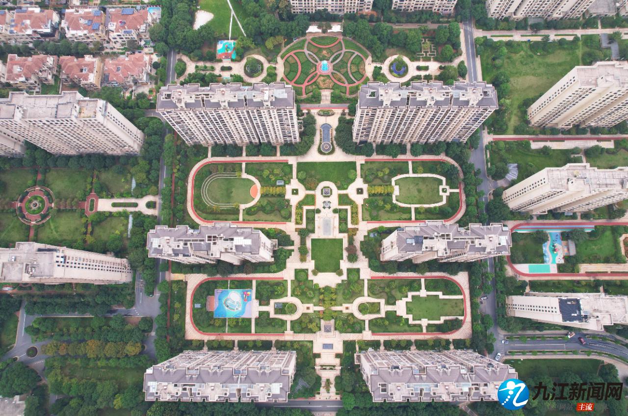 10月14日,俯瞰濂溪区一隅,一小区内楼宇林立、满眼青绿、景色宜人。近年来,我市持续推进城乡环境综合整治,着力打造整洁、优美、文明的城乡人居环境,效果显著,大大提高了市民的幸福感、获得感。(九江日报全媒记者 张驰 摄)