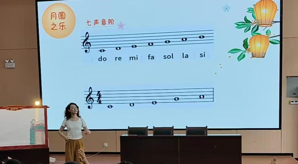 活动伊始,九江小学张洋老师进行了精彩的课堂展示。《中秋大观园》一课以中国传统佳节“中秋节”为文化背景,巧妙地以音乐为主线,串联起赏月、诵诗、赏画等节日习俗并融入音乐教学之中。教学中,让孩子们在“玩”中学,在“乐”中悟,充分感受到了音乐与生活的紧密联系,课堂气氛活跃,精彩纷呈。
