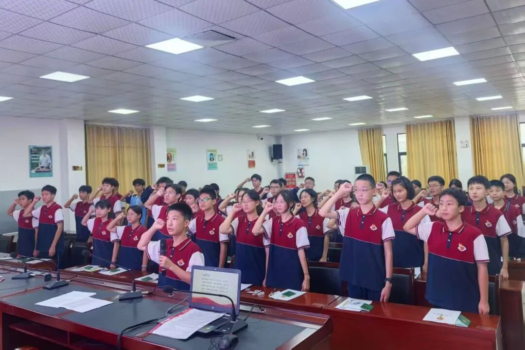 在全场期待的目光中,初三年级主任段金林走上台,庄重宣读本次新入团的团员名单。每一个名字的响起,都是对学子们过往努力的肯定,更是对他们青春担当的认可。当名单宣读完毕,师生们用热烈掌声,向即将迈入共青团大门的新成员送上诚挚祝贺。