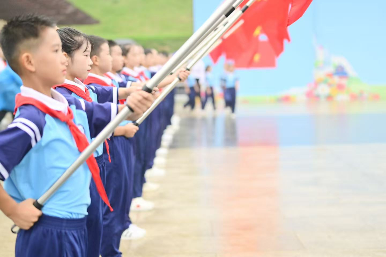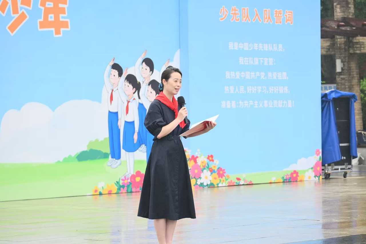 仪式在激昂的出旗曲中正式开始。旗手迈着坚定的步伐前行,全体少先队员高唱《中国少年先锋队队歌》,歌声嘹亮,展现了新时代少先队员昂扬的精神风貌。在宣读新队员名单后,老队员代表为新队员代表佩戴上鲜艳的红领巾。当红领巾在胸前飘扬,新队员的脸上洋溢着激动与自豪。