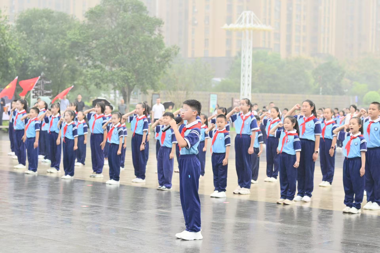 “准备着,为共产主义事业而奋斗!”“时刻准备着!”在全国红领巾巡讲团成员、双峰小学大队辅导员夏卢琴的带领下,全体队员的呼号声响彻广场,表达了他们坚定不移的信念与决心。