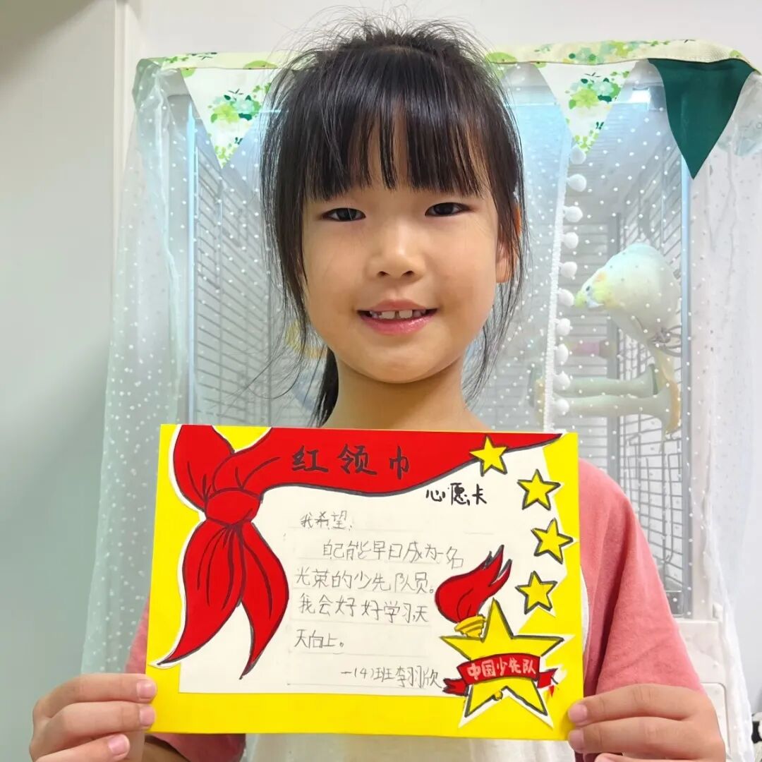 一年级的孩子们,用稚嫩的笔触在“入队心愿卡”上,写下对红领巾的纯真向往。