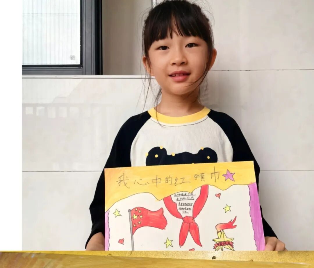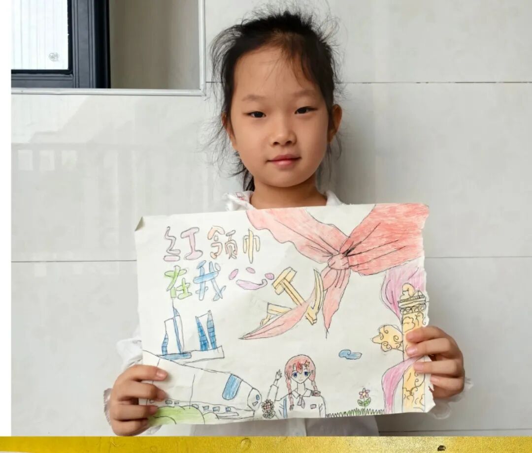 三年级队员在“我心中的红领巾”主题绘画中,用手中的画笔,描绘出对少先队最纯真的理解:有迎风飘扬的队旗,有英雄先烈的故事,有在队旗下快乐成长的场景……一幅幅画作,是想象力与崇高敬意的美妙结合。