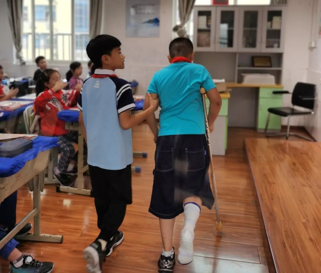 六年级队员将爱与责任延伸至校园之外。他们组成志愿服务队,走进周边社区。“环保小卫士”们清理垃圾、擦拭设施;“爱心小天使”们为老人送去关怀。他们用卓越的行动力,展现了湖滨学子的良好风貌。