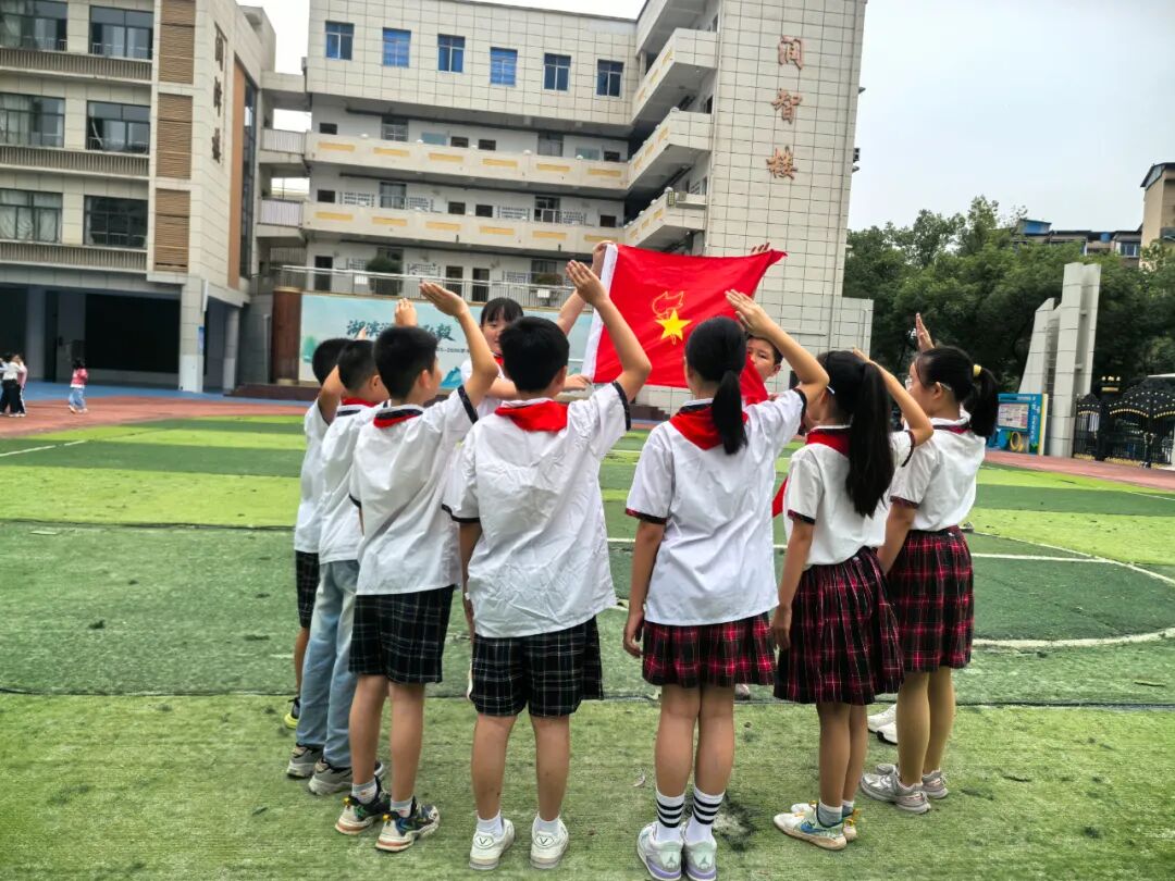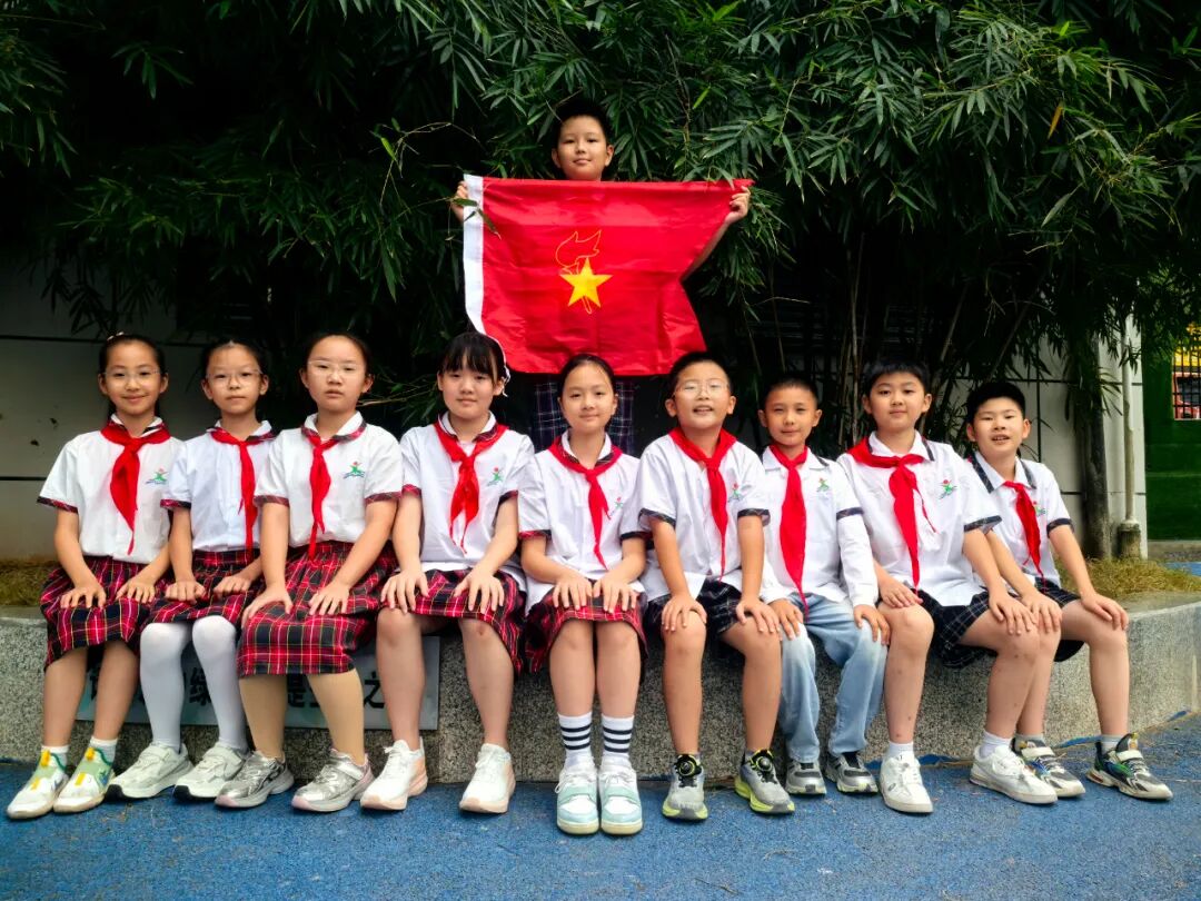 五年级各中队开展了富有创意的“我和队旗合影”活动。镜头前,他们深情诉说与红领巾的故事;队旗下,他们设计创意队形,绽放灿烂笑脸。一张张合影,定格的是身为少先队员的无上光荣。