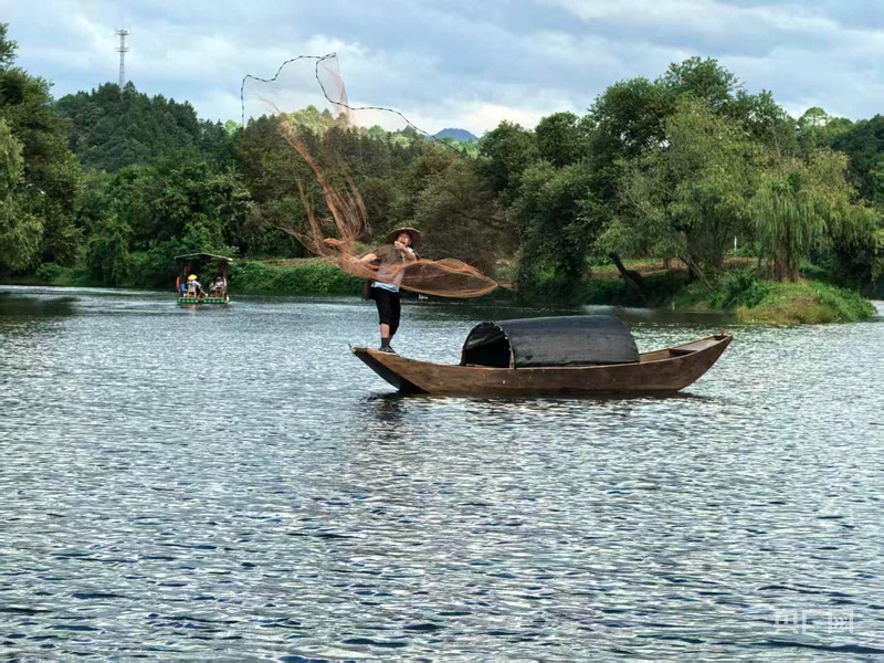 月亮湾上,渔民正在下网捕鱼(央广网记者周蓓 摄)