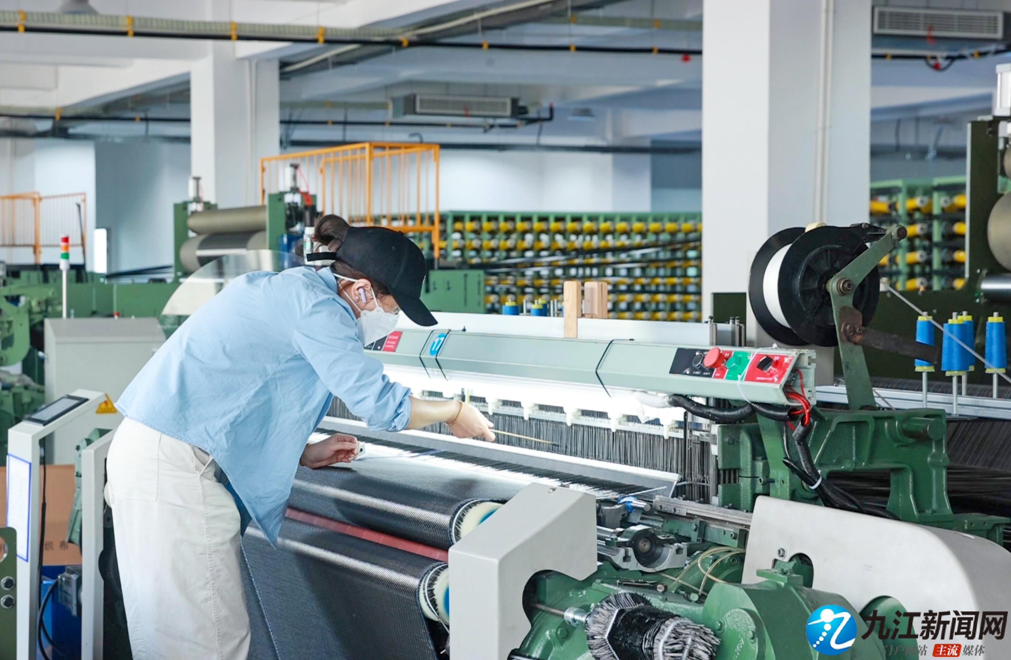 近日,位于共青城市的江西瑞奇碳钎维复合材料有限公司各个生产车间内机声隆隆,40台双幅碳纤维编织机、2台碳纤维预浸机全力运转,开足马力抓生产、赶订单,确保如期交付。目前,该企业订单充足,已经排产到了今年12月底。自今年3月投产以来,企业保持满负荷运转,日均产出1.5万平方米碳纤维布,已实现超过7000万元的销售额,在低空经济材料赛道迅速站稳了脚跟。(潘成 九江日报全媒记者 刘家 摄)