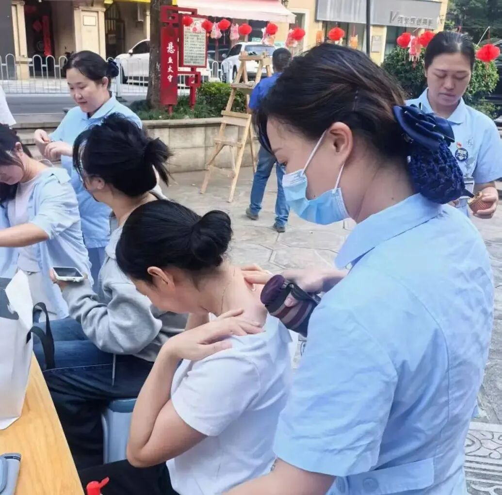 活动现场,专家团队为前来咨询的居民问诊把脉,免费进行测血糖、量血压等,讲解肾内科的常见病和慢性疾病的诊治相关知识。讲座结束后,医护团队和居民进行了深入交流,他们耐心细致地询问了居民的生活方式和用药情况,积极宣传文明健康的生活方式,并在日常习惯、饮食、锻炼情况以及家庭用药等方面提供了良好的指导。 护理人员还为居民免费进行刮痧、手法推拿、针灸、耳穴压豆、穴位贴敷等中医特色疗法,此次活动得到社区居民的一致好评。