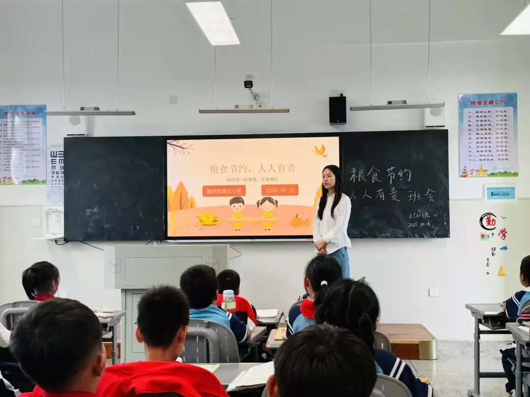 班主任们通过精心准备的多媒体课件、生动的科普视频和互动问答,引导学生了解粮食的来之不易和全球粮食安全的重要性。在热烈的讨论与分享中,节约意识真正“入脑入心”,同学们深刻认识到,“守护盘中粮”不仅是一种个人习惯,更是一份沉甸甸的社会责任。