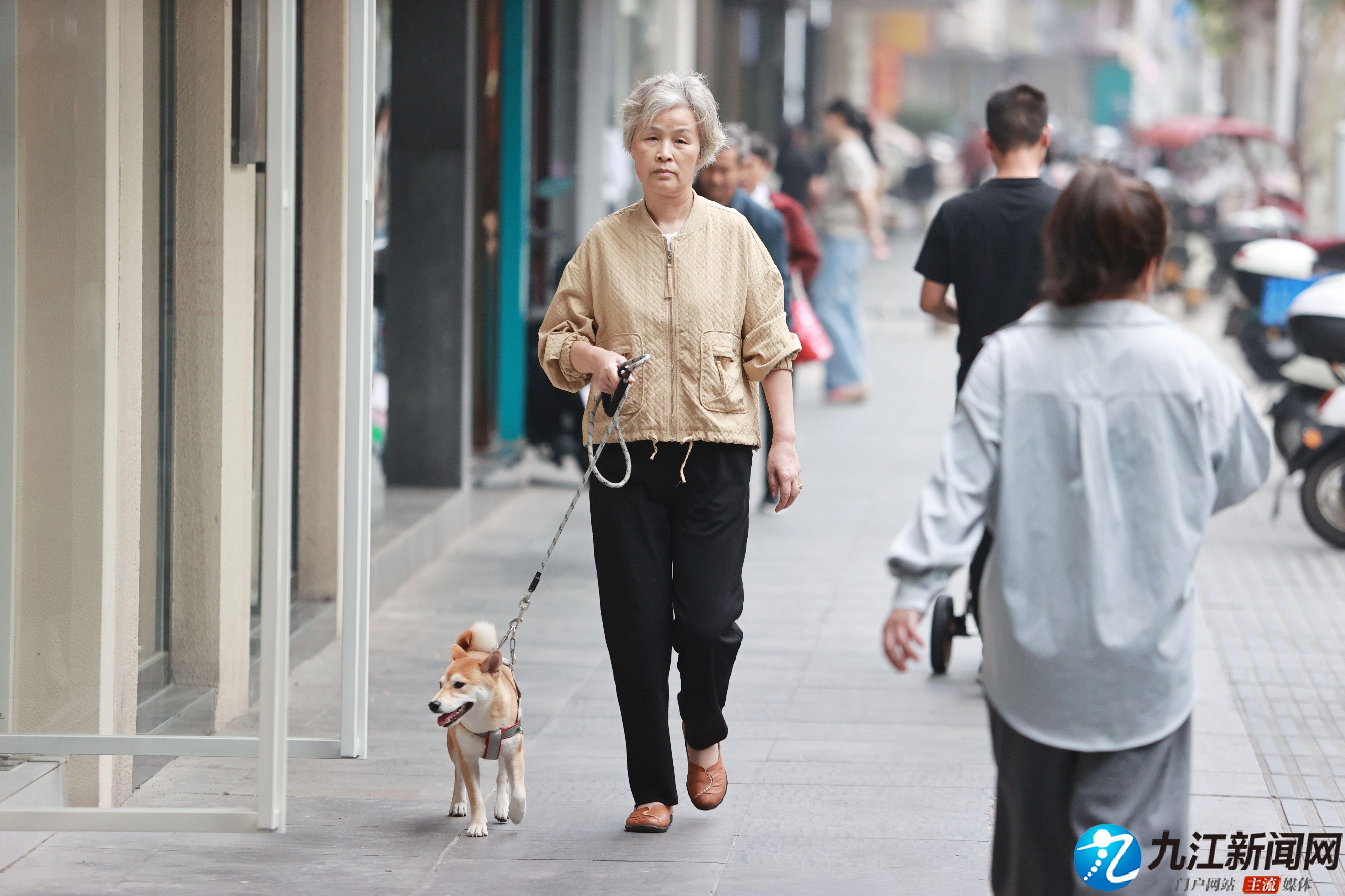 日前,市区浔阳路,一名市民牵着狗绳文明遛狗,并将狗粪用袋子装好扔进垃圾桶。此行为文明又安全,给宠物狗和他人都系上了“安心扣”。(九江日报全媒记者 张驰 摄)