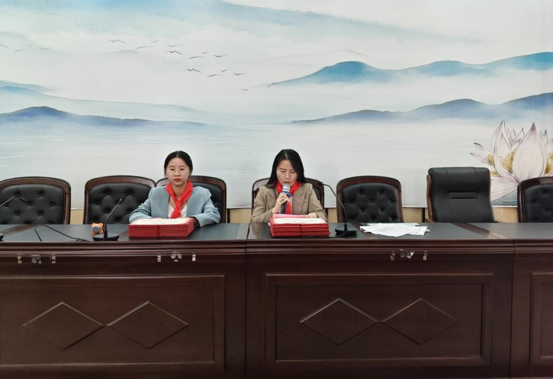 学校团委书记范小菲宣读各中队辅导员名单,并为辅导员逐一颁发聘书,辅导员们双手接聘,脸上满是责任与荣光。