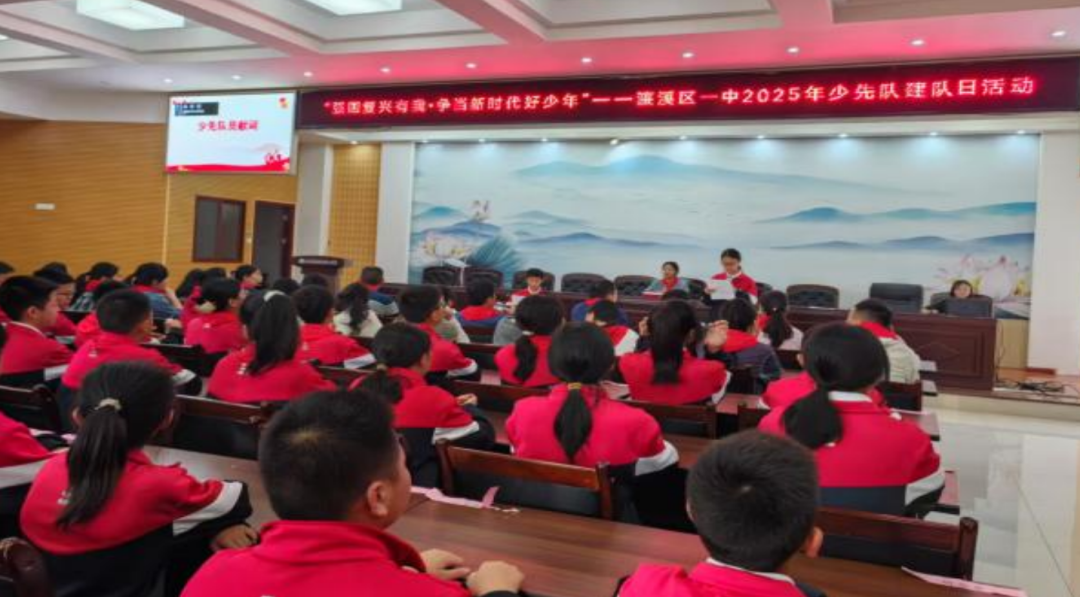 九江新闻网讯(邹春蕾)为传承红色基因、厚植家国情怀、培育时代新人,濂溪区一中学府校区于2025年10月中旬,在弘毅楼十楼报告厅举行七年级少先队建队仪式。