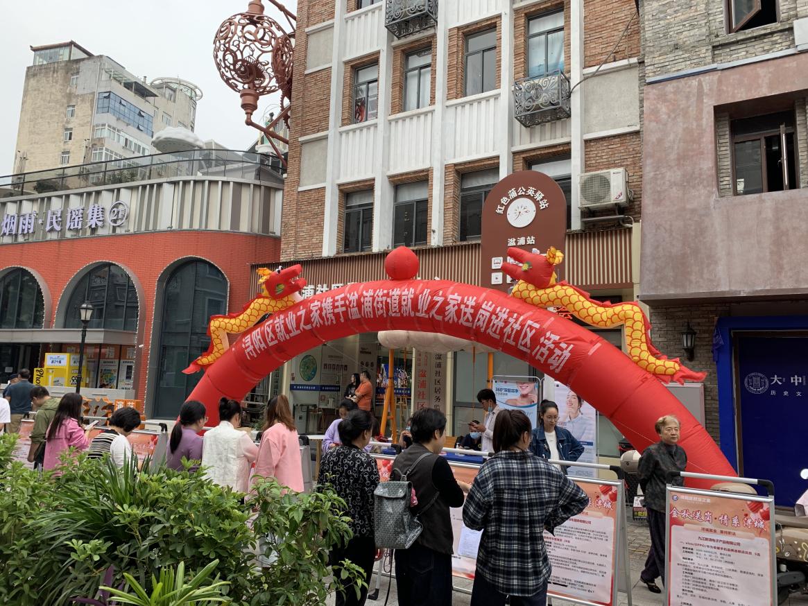 10月16日,浔阳区就业之家携手湓浦街道就业之家,以“金秋送岗,情系浔城”为主题,在九江历史文化名街——大中路,举办了一场别开生面、暖意融融的线下招聘会。古韵悠长的大中路上,招聘会的彩虹门和动听音乐吸引了不少市民,现场气氛热烈,一座连接求职者与用人单位的“就业之桥”在此温情搭建。