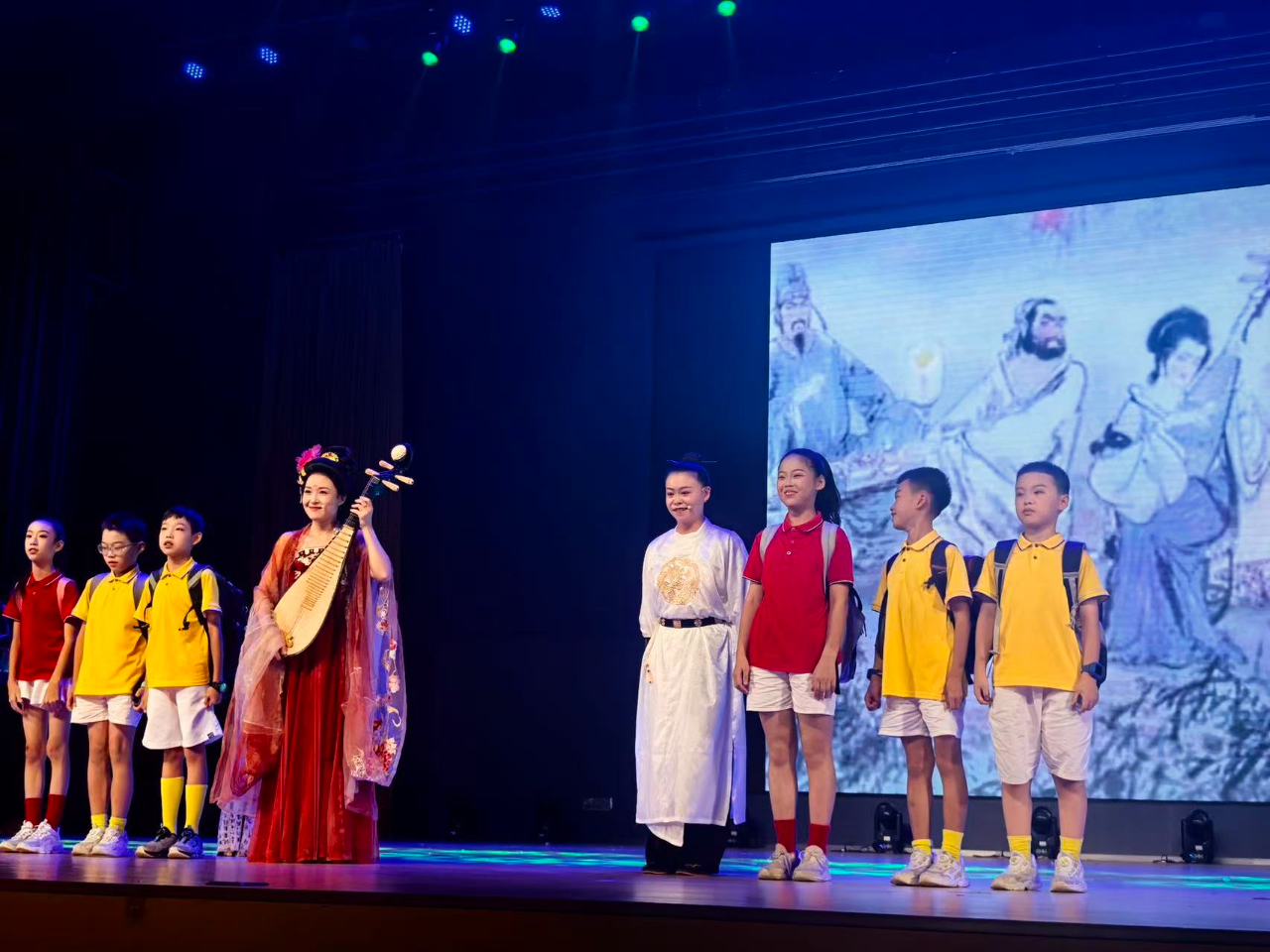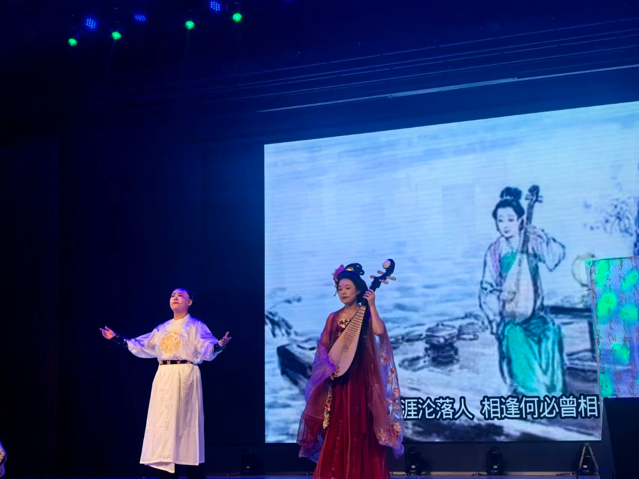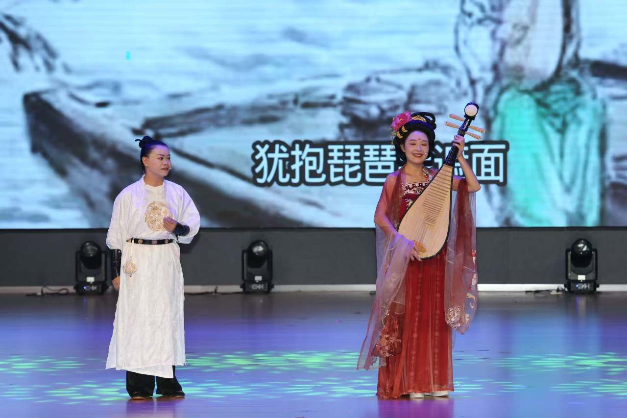 决赛活动现场,各参赛队伍通过精心编排,将九江诗词与舞台艺术巧妙结合,奉献一场场精彩的演出。九江小学教师丁婧、曾钰带领学生们精心策划,巧妙编排,对经典名篇《琵琶行》进行情景演绎。比赛现场,她们自信深情地演绎,充分展现了九小师生深厚的文化底蕴与热烈的青春活力,赢得了与会评委和观众的一致好评和热烈掌声,并最终荣获佳绩。