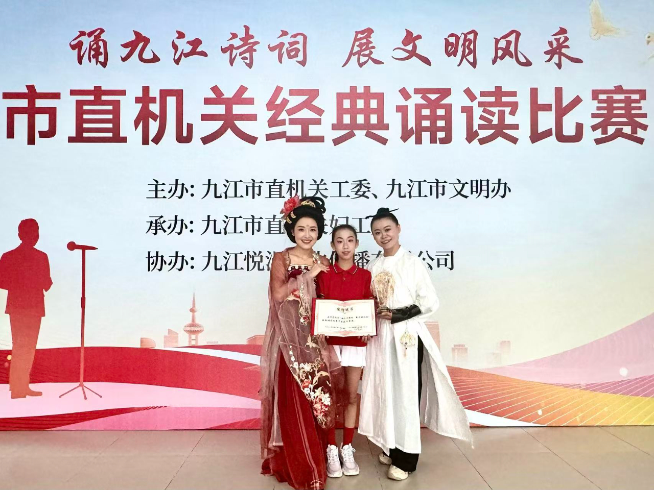 九江新闻网讯(丁婧)2025年10月16日下午,由九江市直机关工委组织的“诵九江诗词 展文明风采”活动决赛在江西财经职业学院八里湖校区举行。九江小学选送的节目《琵琶行》节选取得全场第三名的好成绩,荣获二等奖。